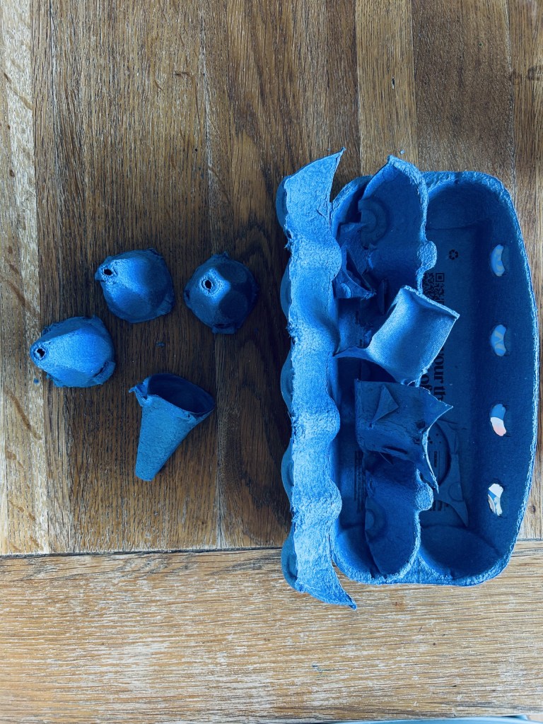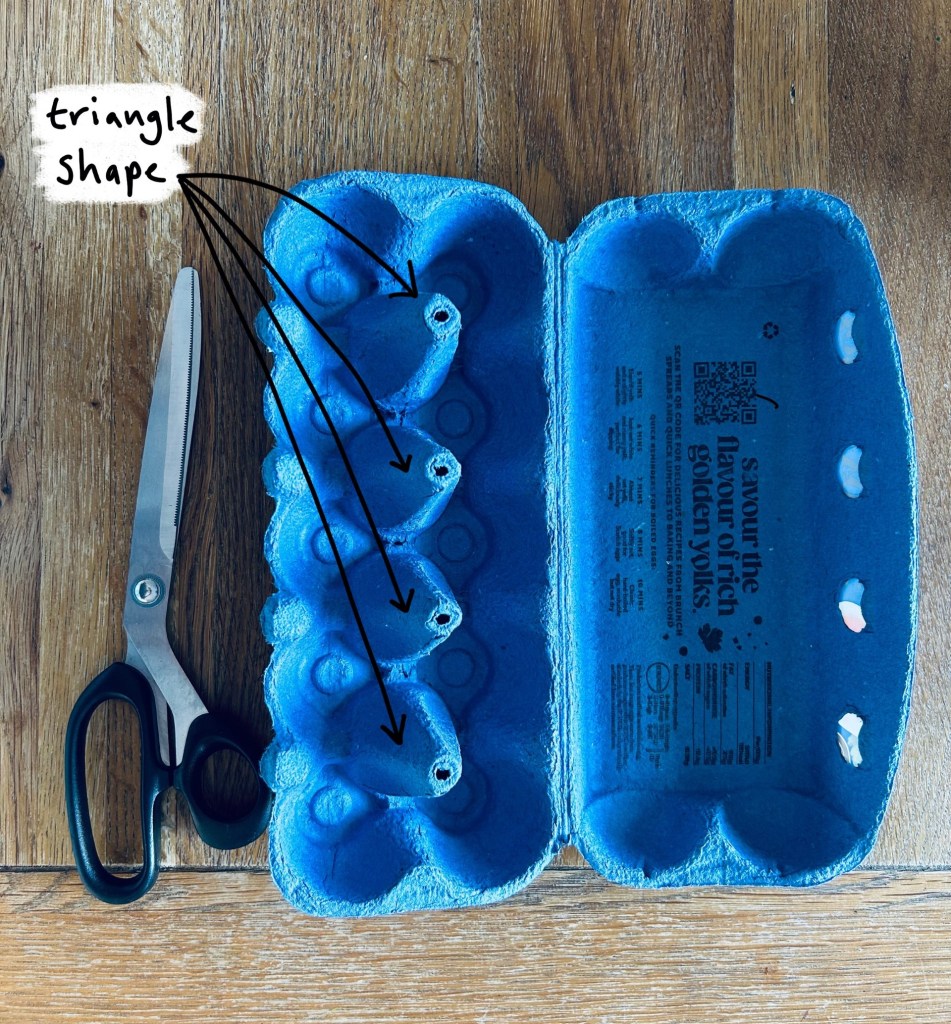 - Cut out the inner triangle shapes from the egg cartoon.