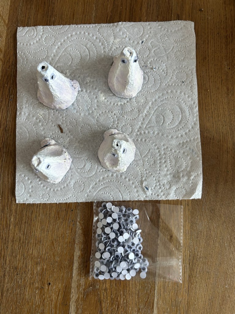 3. Once all is dry, apply the googly eyes to the top of the shape – as shown in the image.